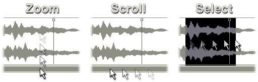 - Scroll (прокрутка) - щёлкните левой кнопкой по полосе прокрутки/пути сэмпла и перетащите влево/вправо.