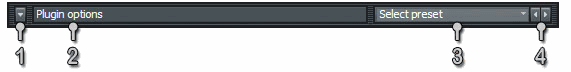 Панель подсказок находится внизу всех VST плагинов Image-Line и она отображает значения ручек и ползунков, когда они изменяются в интерфейсе плагина. Подсказка также будет показана, если указатель мыши будет наведён поверх части интерфейса плагина, это быстрый способ узнать, как работают плагины. Две других полезных функций панели подсказок это меню опции плагина (1) и параметры пресетов (3 и 4).