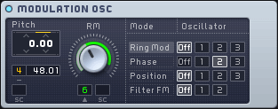 По умолчанию, модуляционный осциллятор также отслеживает высоту тона, что означает, что легко достигается тональная играбельность звуков кольцевой модуляции.