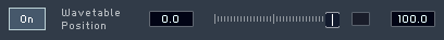 Покрутите макро-контроллер 2. LFO вызывающее изменение положения ручки волновой таблицы туда и обратно, при перемещении макро-контроллера 2 будет изменять количество влияния LFO от 0 до 100% эффекта. Если макро-контроллер 2 повёрнут полностью влево (на минимум), то LFO не будет перемещать ручку вообще. И наоборот, если макро-контроллер 2 повёрнут полностью вправо, LFO сможет перемещать ручку туда и обратно по всему диапазону который вы назначили.