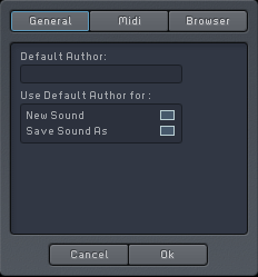 Вкладка General позволяет установить имя автора, по умолчанию, которое затем будет вставляться в поле Author в мета-информации нового звука (за это отвечает первое поле). Вы можете выбрать, будет ли имя вставляться, когда будет сохраняется новый звук, или, когда звук сохраняется под новым названием (т.е. с помощью команды Save As), за это отвечают 2 ниже следующие опции в соответствующем порядке.
