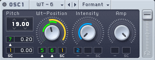 Ручка Intensity (интенсивность) для каждого осциллятора даёт вам несколько способов формирования считывания волновых-таблиц, в зависимости от выбранного режима осциллятора в правом выпадающем меню.
