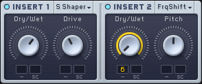 Вы можете выбирать и управлять разрыв-эффектами с помощью всплывающих меню, ручек параметров и модуляционных слотов в разделе вставки интерфейса Massive.