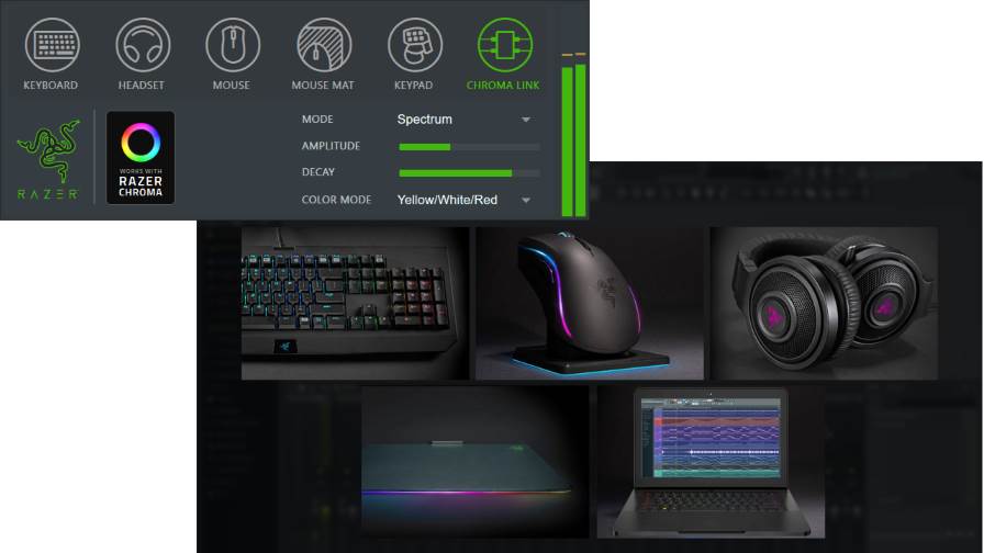 Razer Chroma - это эффект визуализации. Он будет реагировать на темп проекта или аудиовход канала микшера, на который он загружен. Вы можете использовать столько плагинов Razer Chroma, сколько у вас есть устройств, или использовать его для управления ими.