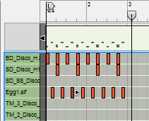 Для того чтобы не выбирать каждый раз иконку карандаша воспользуйтесь клавишей Alt на клавиатуре, при нажатой и удерживаемой в нажатом состоянии клавише Alt курсор автоматически приобретает свойства карандаша. После того как вы нарисуете миди клип опять вернитесь в обычный режим, для этого нажмите иконку стрелки (рядом с иконкой карандаша) или отпустите клавишу Alt. После перехода в обычный режим, щёлкните 2 раза по только что созданному мидиклипу или же нажмите по трёхцветной иконки рядом со стрелкой или же нажмите комбинацию клавиш Ctrl+E. Попробуйте нарисовать бит к примеру как на рисунке ниже (более подробно о работе с мидиклипами будет написано далее):