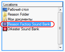В появившемся окне выберите пункт Reason Factory Sound Bank (см. рис. ниже):
