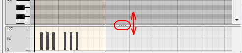 Каждой ноте можно менять громкость для этого воспользуйтесь нижней частью окна пьяно ролла. Если у вас его нет, то потяните за значок "...." указанный на картинке ниже (посмотрите внимательно):