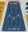 Фейдера в разделе Cut управляют тембром, они позволяет сократить или повысить на уровень до 18dB низкие, средние и высокие области частот. Срез активируется с помощью кнопки Cut выше фейдеров.