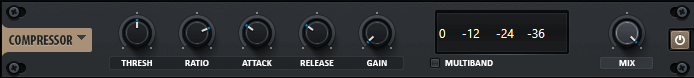 - Multiband (многополосный) - включение этого переключателя делает компрессор многополосным повышающая/понижающая компрессия. Это экстремальный параметр, но вы можете найти применение для него. Полосы не настраиваются пользователем отдельно.