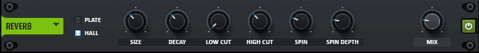 • Damp (поглощение) - срезание высоких частот реверберации с течением времени. Ручка управляет тем, как быстро происходит это ослабление высоких частот. 0% = нет поглощения, 100% = максимальное поглощения.