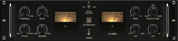 Когда Фабрицио, и я проанализировали RED, мы выяснили, что это был действительно очень уникальный зверь. Атака и автоматическое восстановление работают весьма своеобразно и музыкально. Но настоящую магию мы обнаружили в разделе выхода! Мы обнаружили, что просто нажав Makeup gain несколько дБ делают некоторые безумные вещи для звука! Небольшой толчок, и всё стало гораздо больше энергичным, жирным, и агрессивным. После большего обследования, мы поняли, что это было из-за ряда нелинейных реакций, вызванных выходным трансформатором. Howie Weinberg, известный мастеринг инженер, который имеет студию на нашем кампусе оставил нам один маленький секрет. Он использует свои RED не для сжатия, а только для усиления выхода, чтобы получить этот удивительный эффект! Так что я решил сделать что-то, что не может оригинальный аппарат.. Я поместил, эффект выходного трансформатора на ручку под названием DRIVE. Когда вы нажимаете эту ручку, вы получите этот красивый панч и артикуляцию транзиентов, и вы можете управлять тем, сколько вы хотите этого эффекта, независимо от того, используете ли вы Makeup gain или нет! Известный рок-звукорежиссёр Justin Neibank был бета-тестиром FG-RED и полюбил драйв, получаемый при значении этого параметра '6,6', как магическое число. Но вы можете попробовать выкрутить всю эту ручку для получения интересного эффекта!
