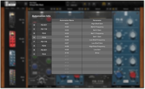 Эта панель отображает список всех назначений автоматизации, для всех загруженных в данный момент модулей. В столбце Automation Name (название автоматизации) вы можете прочитать названия параметров, как они будут видны в хосте. В столбце Parameter (параметры), вы можете прочитать названия параметров модуля. В зависимости от формата плагина стойки, названия автоматизаций, которые подвергаются воздействию в хосте стойки могут быть общими (например, "Н-10"), или они могут быть динамически изменены (например, "H-Drive").