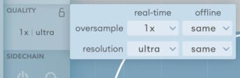 Используйте выпадающее меню с правой стороны, чтобы изменить настройки оффлайн-рендеринга. Эти настройки переопределяют настройки реального времени, когда хост плагина сообщает, что он выполняет оффлайн-рендеринг. Все основные DAW должны поддерживать эту функцию.
