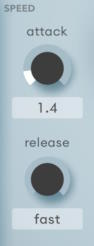 Атака определяет, насколько быстро процессор реагирует на резонанс. Высокое значение атаки приводит к более медленному отклику, и наоборот, по аналогии с компрессорами. Значение атаки отображается как условная константа, в то время как фактическое время реакции зависит от частоты. Скорость атаки всегда относительно выше на высоких частотах.