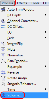Для того чтобы изменить громкость выделенного участка, воспользуйтесь списком процессов: