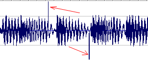 Щелчки и pops зачастую встречаются в старых записях или являются результатом плохого редактирования или соединения аудио материала. Их можно обнаружить визуально, как резкие сбои (иглы) в нормальной кривой сигнала (см. рис. ниже):