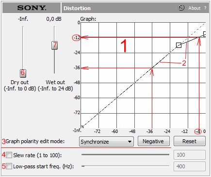 5. Low-pass start freq - фильтрует некоторые высокие частоты ваших аудиоданных. Этот параметр может быть полезен, если у вас имеется действительно сильный эффект искажения, и на высоких частотах появляется нежелательное жужжание. Данный параметр помогает удалить такое жужжание;