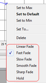 Для того чтобы более тонко настроить огибающую щёлкните по точке на линии правой кнопкой мыши и выберите необходимый вам вариант из списка: