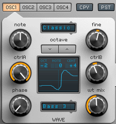 - CPY/PST (копировать/вставить) - копирование/вставка настроек осциллятора.