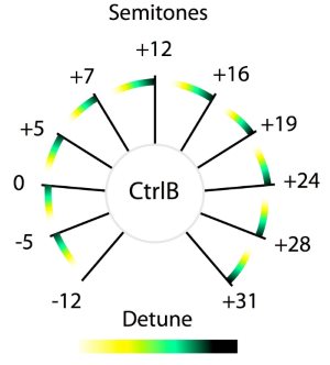 - Ctrl B - управляет шириной импульса. Кроме того, эта ручка позволяет изменять начальную точку сигнала (не то же самое, что ручка Phase) для WT сигналов, расширяя палитру звуков, которые могут быть созданы.