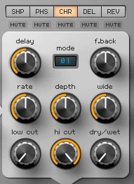 - Mode (режим) - первый режим это флэнджер. Другие режимы (2-6) это различные алгоритмы хоруса.