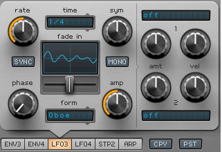 - SYNC (синхронизация) - скорость LFO синхронизируется с темпом проекта.
