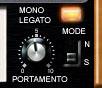 Есть два режима портаменто, нормальный (N) и скользящий (S), который может быть выбран, используя выключатель режима прямо рядом с кнопкой портаменто. В скользящем режиме тон будет сдвигаться у каждой ноты. В нормальном режиме тон будет сдвигаться если, по крайней мере, нажата еще одна другая нота.