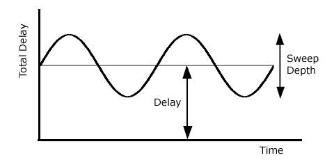 Параметр Depth регулирует глубину распространения задержки в звуке. Если Depth равен 0, то никакой модуляции не произайдет (величина задержки будет постоянной). При значении 10 модуляция будет максимальная.