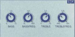 Данный эквалайзер может использован чтобы сделать быстрые и простые корректировки верхних и нижних частот. Ручка Bass поднимает нижние частоты и максимальное "поднятие" нижних частот регулируется ручкой Bassfreq. Подобным образом регулируются и верхние частоты с помощью ручек Treble и Treblefreq.