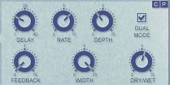 Стерео ширина эффекта дилэй может быть изменена ручкой Width. Панорамирование эхо, в крайние левый и правый каналы, делает звук слишком "широким". Ручкой Width вы можете уменьшить ширину распространения звука, а если Width равен 0, то в звуке будет создан монофонический эхо эффект.