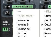 Панель модуляции позволит вам модулировать целый набор параметров таких как две ADSR огибающих осцилляторов, два низко-частотных осциллятора и других источников формирования звука. Каждый источник может быть связан с двумя различными параметрами, которые могут быть выбраны из выскакивающего меню, которое появляется, когда вы щёлкаете по одному из желаемых параметров.