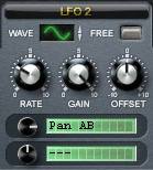 Генератор низких частот (LFO) также относится к источнику модуляции. Два LFO в Sylenth1 имеют 10 различных волновых форм. Ручка Rate устанавливает частоту генератора, ручка Gain изменяет амплитуду и ручка Offset может использоваться, чтобы добавить положительную или отрицательную постоянную уровня воздействия LFO на выходе. Если ручка Offset установлена в 0, и если будет нажата кнопка Free, то LFO будет работать в независимом режиме и не будет зависеть от проигранных нот.
