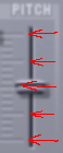 У фейдера параметра Pitch есть специальные риски (1 риска одна октава).