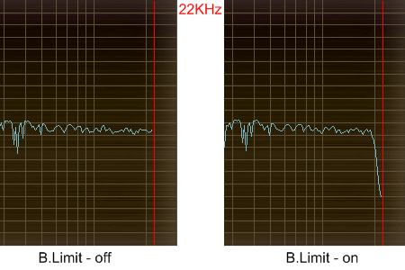 - B.Limit (Band-Limit Waveform) - ограничении частотного спектра волны. Срезает частоты выше 20.000Hz. Данная опция не влияет на звук шума.