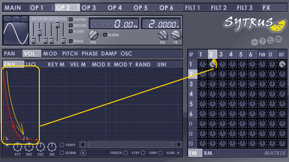 2 синуса, 1й с кратностью 0.0050х, 2й с кратностью 0.0100х. При FM синтезе происходит поочерёдное воздействие синусов