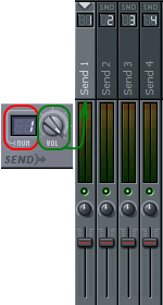 - Красная область NUM (Numder) - номер Send канала микшера на который будет производиться посыл.