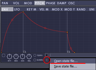 5. Далее нажмите небольшой треугольник как на рисунке ниже и выберите Open state file.