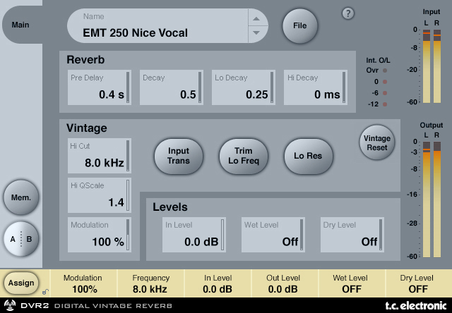 DVR2 предлагает чистую общую реверберацию с истинно винтажным тембром.
