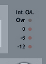 Два светодиода в разделе измерений, находящиеся между измерителей входа и выхода будут загораться в случаев обнаружения внутренней перегрузки DSP. Вы должны снизить уровень (In Level) входящего сигнала, чтобы избежать этих перегрузок. Чтобы сбросить индикацию, нажмите по светодиодам.