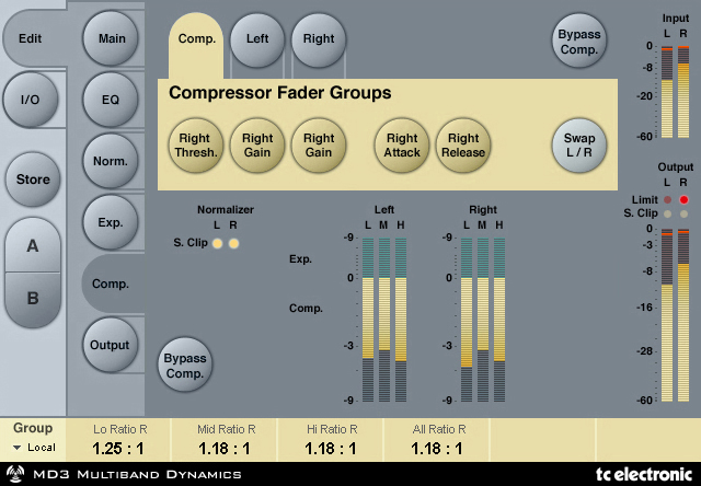 Предлагая истинную структуру разделения боковой цепи, MD3 также способен работать с моно материалом компрессировать/лимитировать на двух отдельных каналах, чего нет в других многополосных динамическим процессорах.