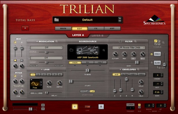 Страница Edit включает самый необходимый набор контроллеров для каждого аспекта звучания. Если необходимо применить более точные и детализированные контроллеры, функция Zoom некоторых параметров страницы Edit обеспечивает доступ к ряду контроллеров для более углубленного редактирования. Страница Edit делится на две основных секции, Общие параметры & Параметры Слоя. Общие параметры Патча в Нижнем колонтитуле и на левой и правой сторонах страницы Edit являются контроллерами, которые затрагивают весь Патч (Слой A & Слой B). Параметры Слоя расположены посредине страницы, и уникальны для каждого Слоя, поэтому они изменяются при выборе соответствующего Слоя. При этом общие контроллеры слева и справа не изменяются.