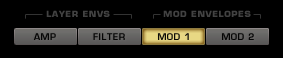 Выше области отображения огибающей расположены четыре кнопки для выбора контроллеров четырех Огибающих, доступных в текущем Слое.