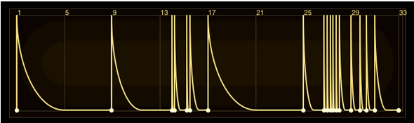 • Слайдер CURVES - Чем выше значения слайдера Curves, тем больше различия в кривых между стадиями. Более высокие значения также сглаживают острые типы переходов Огибающей, такие как bump, pulse, spike, linear и три и четыре кривых импульса.