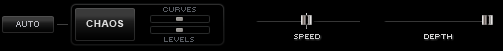 • Кнопка CHAOS - Каждый раз, при нажатии на кнопке CHAOS, контур Огибающей будет рандомизироваться. Два смежных минислайдера, CURVES и LEVELS, определяют вероятность рандомизации, сделанной при включении кнопки CHAOS.