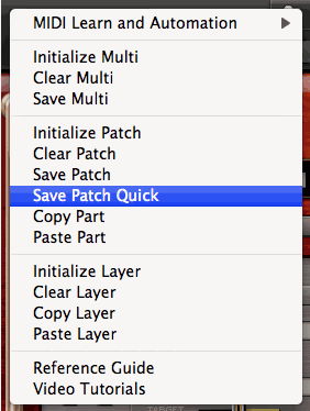 Сохранение Патча (или Мультиинструмента) осуществляется с помощью опции Save Patch (Save Multi) из Меню Utility. После того как Вы дали название и сохранили Патч или Мультиинструмент, откроется окно EDIT TAGS, где можно назначить различные Типы атрибутов и тэги, добавить пользовательские тэги, и Ваши собственные Ключевые слова и Заметки к файлу. Как только Вы закончили редактировать тэги, щелкните на кнопке SAVE, чтобы завершить процесс сохранения. Чтобы отменить процесс, щелкните на кнопке CANCEL. Патчи & Мультиинструменты необходимо сохранять в папках с названием User. Самостоятельно создать папки уровня User нельзя. Кнопку "Refresh" в Браузере после сохранения нового Патча или Мультиинструмента нажимать необязательно.