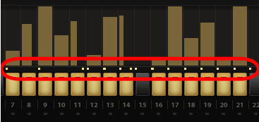 При импортировании или перетаскивании MIDI файла в область Groove Lock™, ниже шагов Арпеджиатора появляются маленькие желтые точки. Эти точки выполняют двойную функцию. Они подтверждают, что функция Groove Lock™ приняла MIDI данные и обеспечивает визуальную ссылку MIDI содержимого. Изменение значения синхронизации Арпеджиатора изменяет разрешение желтых точек.