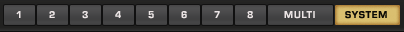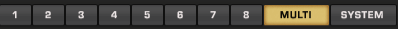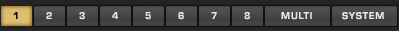 Кнопки навигации в Заголовке используются для выбора и просмотра любой из восьми Частей, доступа к секции Multi или странице System. Одновременно может быть нажата только одна кнопка.