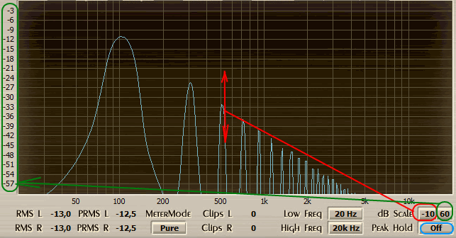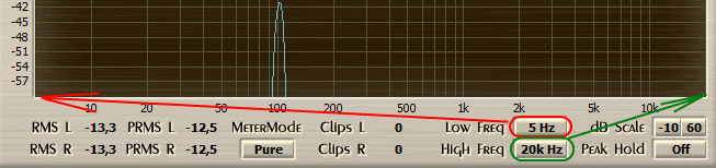 • Slope - изменение наклона отображения АЧХ. Если вы только начинаете изучать анализатор, то сделайте значение равное 0,0db, это облегчит изучение, т.к. вы будете видеть то, что есть на самом деле.