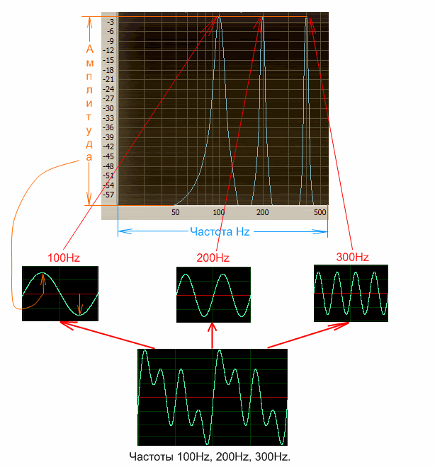 Все эти пики (синусы (частоты)) называются "Гармоники".