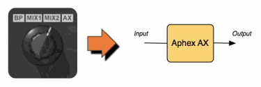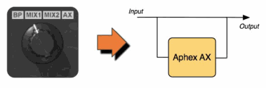 Когда мы первоначально моделировали устройство, копируя его звук в режимах вставки (insert) и посыла/возврата (send/return), мы поняли, что каждый режим имеет своё собственное уникальное звучание. В первую очередь это происходит потому, что фазовые отношения между прямым звуком и AX звуком инвертируются, и AX сигнал смешивается с чистым прямым сигналом, в то время как BP (обходящий) сигнал имеет свой собственный ответ фазы, и в результате не полного инвертирования фазы, влияет на звук микса.